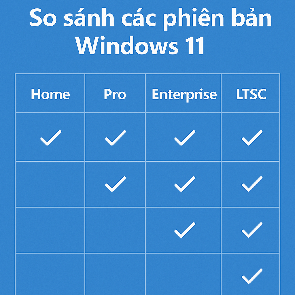 | Tính năng/Phiên bản | Windows 11 Home | Windows 11 Pro | Windows 11 Enterprise | Windows 11 LTSC |